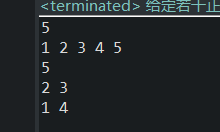 public static void main(String[] args) { // 输入n代表有n个正整数,接着输入n个正整数,接着输入k代表求和 Scanner in = new Scanner(System.in); int n = in.nextInt(); int a[] = newint[n + 1]; for (int i = 1; i <= n; i++) a[i] = in.nextInt(); int key = in.nextInt(); map[][] jj = new map[n + 1][key + 1]; in.close(); for (int i = 0; i < n + 1; i++) for (int j = 0; j < key + 1; j++) { map haha = new map();//这一步一定需要,切记 jj[i][j] = haha; jj[i][j].i = 0; }